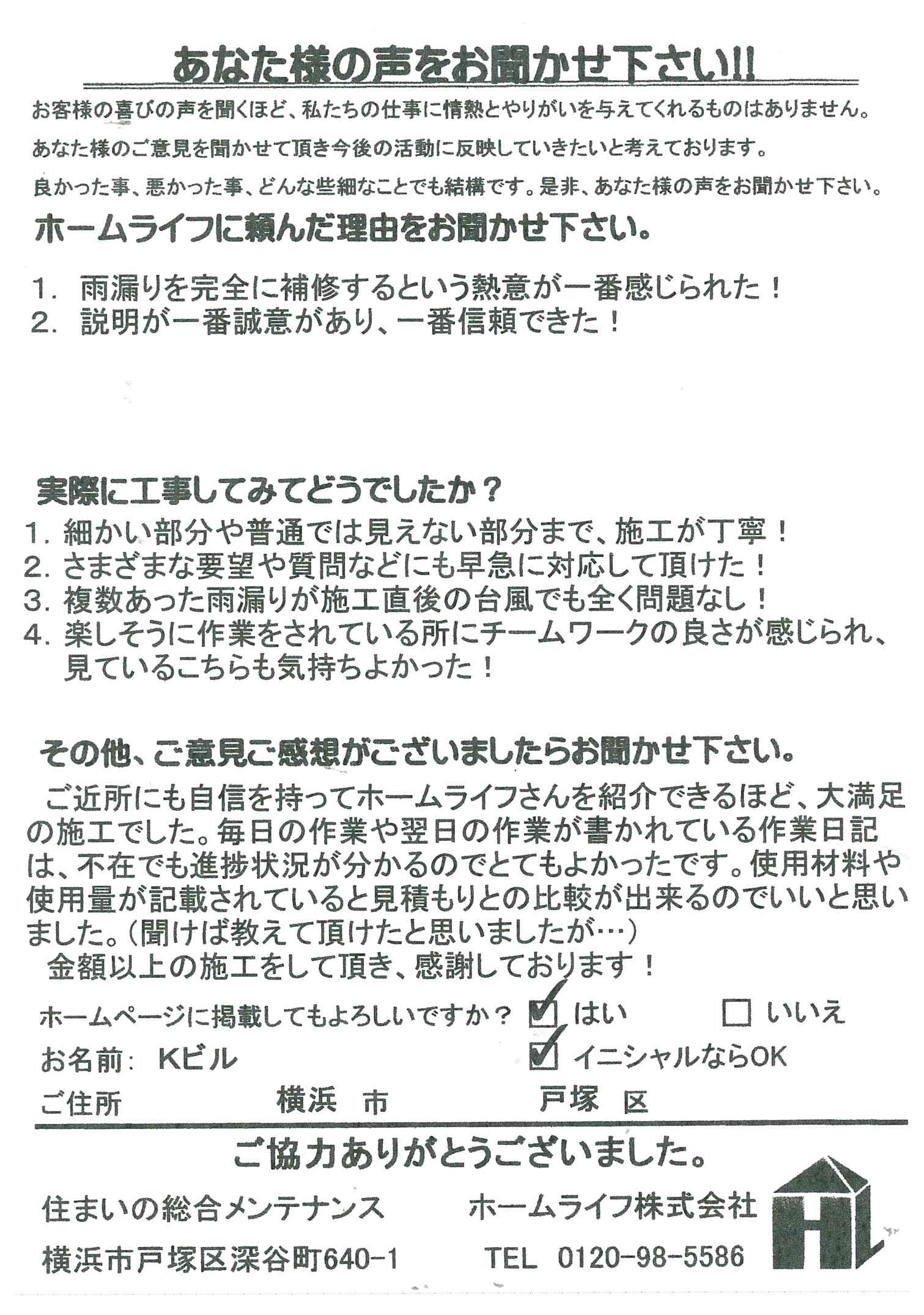1.雨漏りを完全に補修するという熱意が一番感じられた