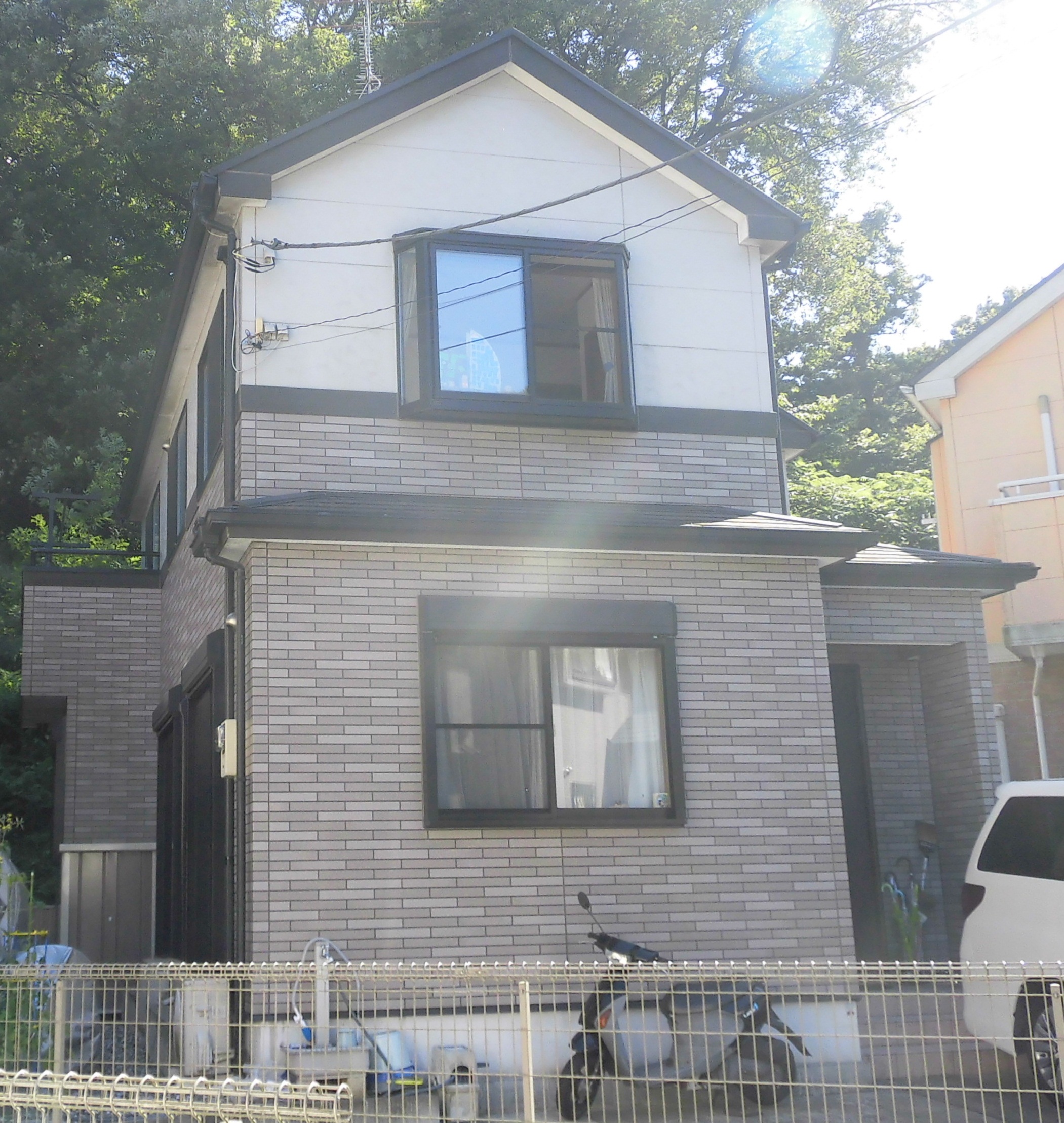 洗浄後、ケレン処理します。(塗装する前に浮いている古い塗膜を落とし、細かい傷を付けて密着性を良くします。)塗り残しがないように確認しながら塗りました。まだ透けている所がありますが、2回目を塗れば綺麗に仕上がります。