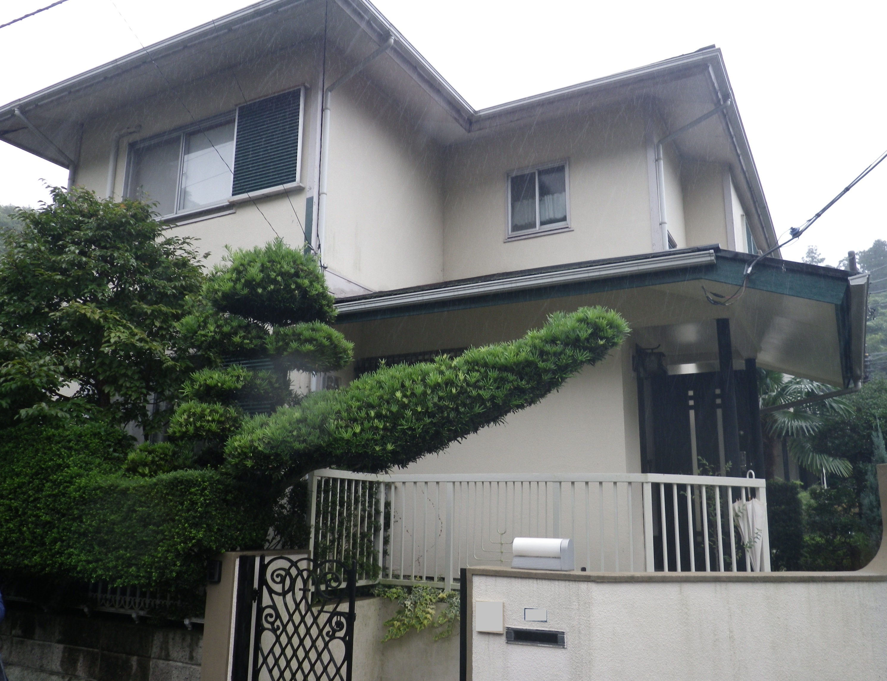 外壁洗浄後、塗料をたっぷり付けて塗装しました。