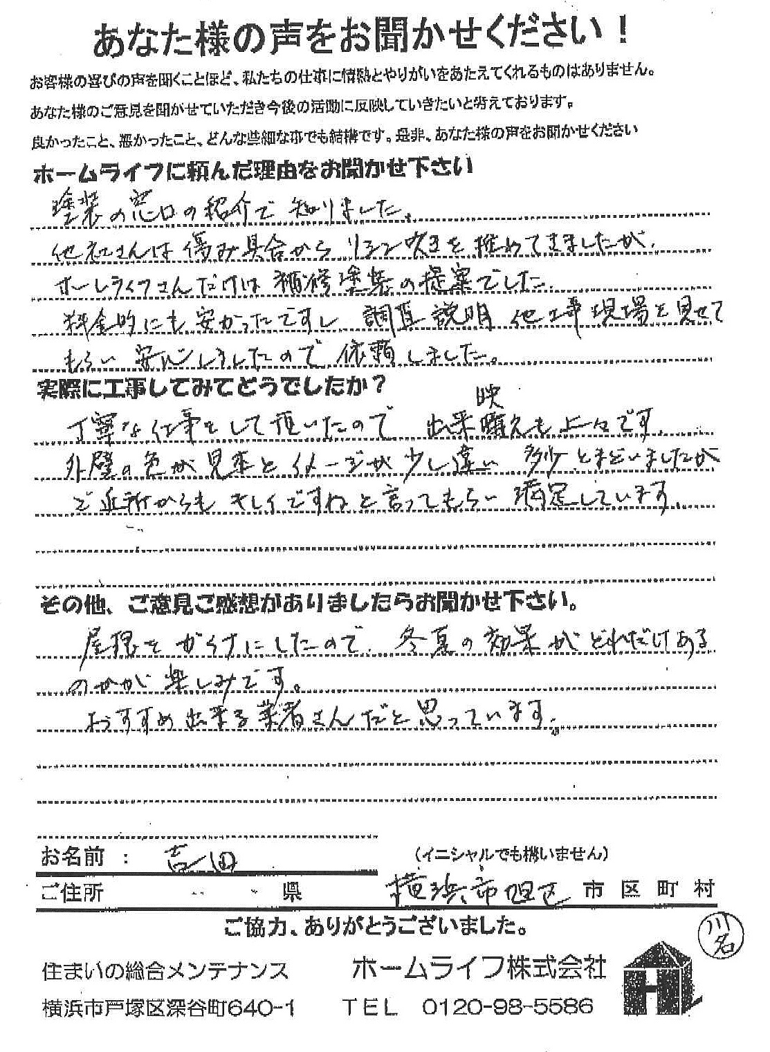 ご近所さんからも「綺麗ですね」と言ってもらい満足しています。 - その他、ご意見ご感想がございましたらお聞かせください