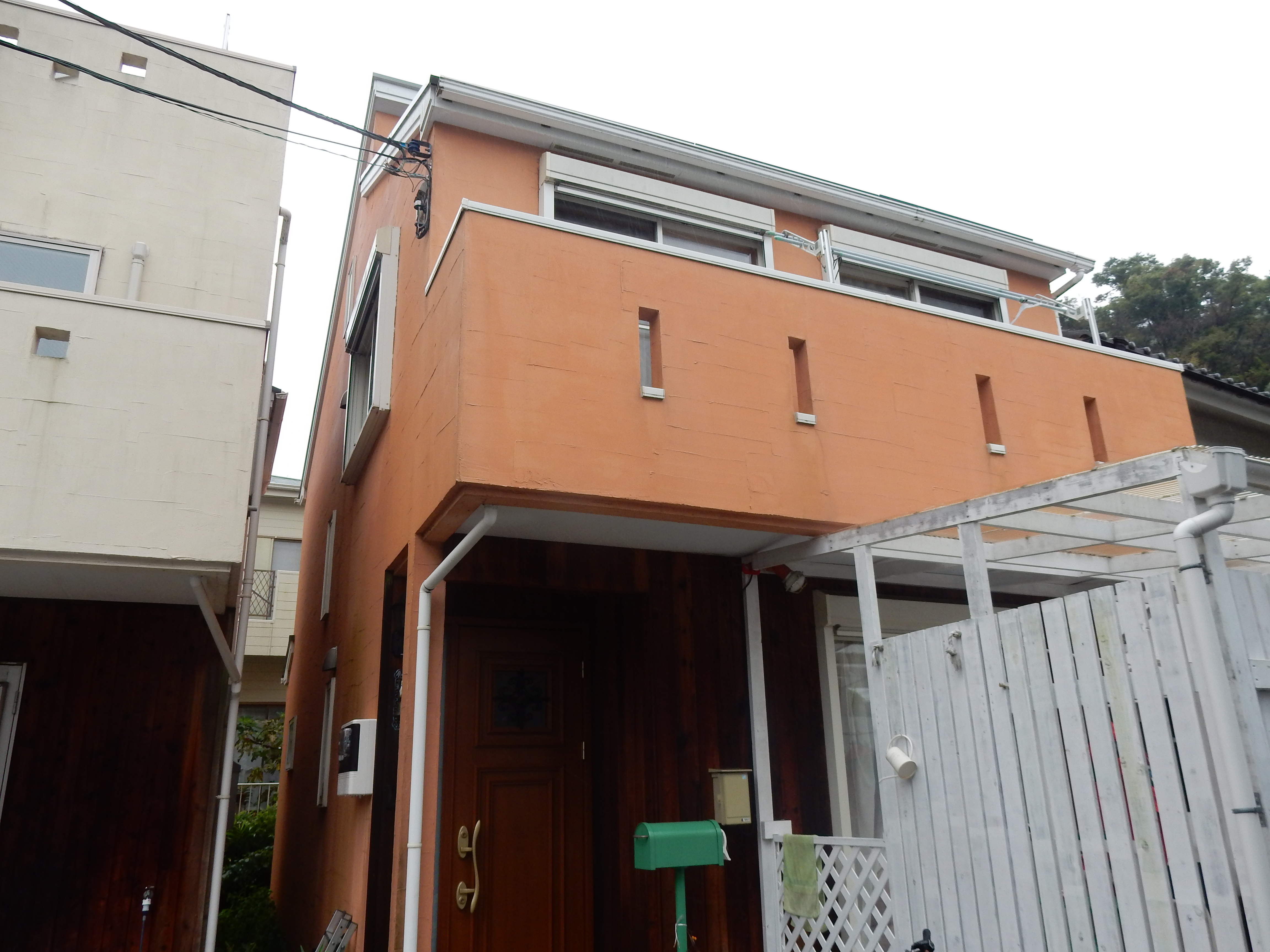 洗浄後、ケレン処理します。塗装する前に浮いている古い塗膜を落とし、細かい傷を付けて密着性を良くします。