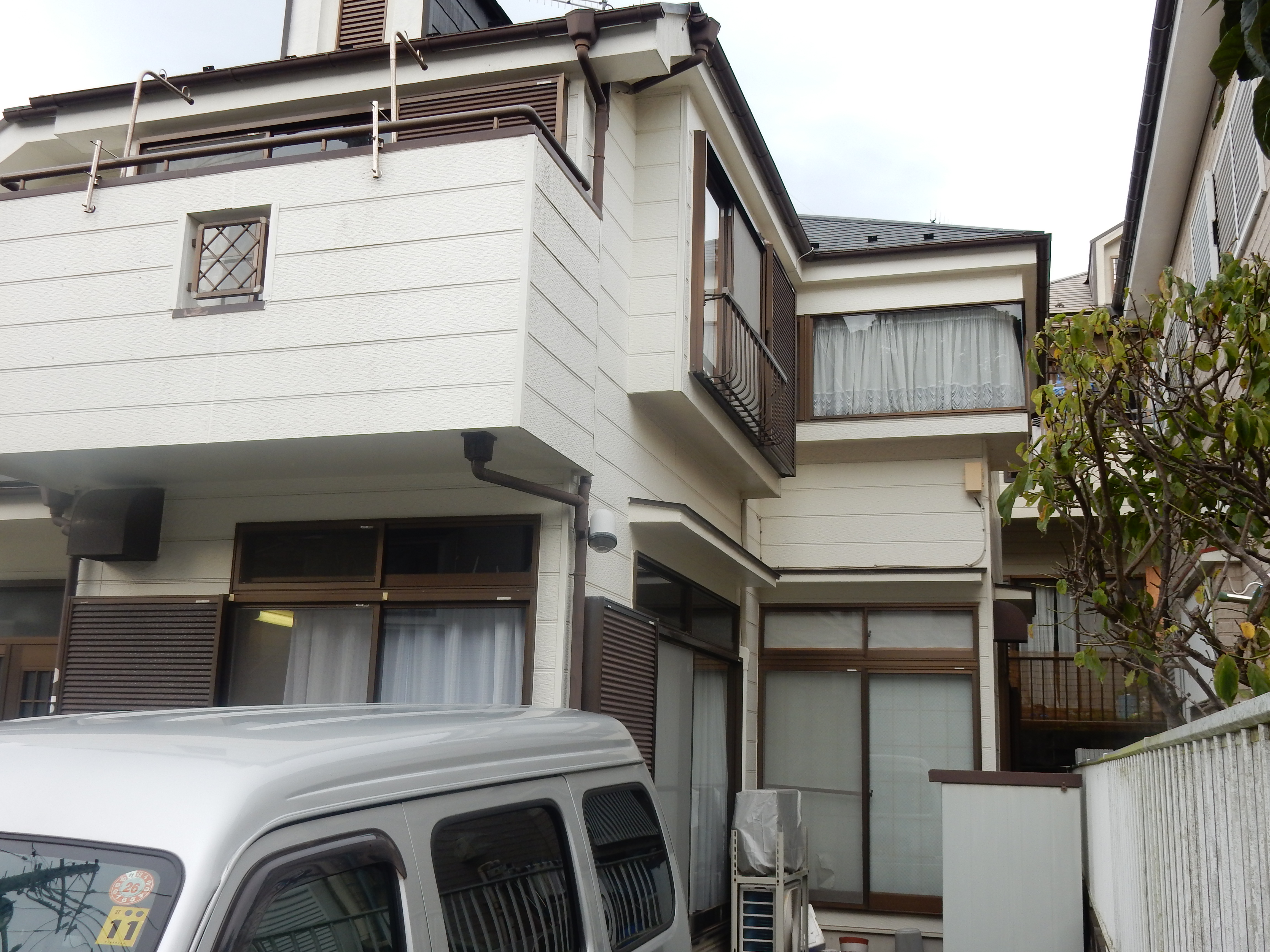 ケレン処理(塗装する前に浮いている古い塗膜を落とし、細かい傷を付けて密着性を良くします。)後、下塗り、上塗りします。