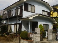 外壁バイオ洗浄後、塗料をたっぷり付けて塗装します。