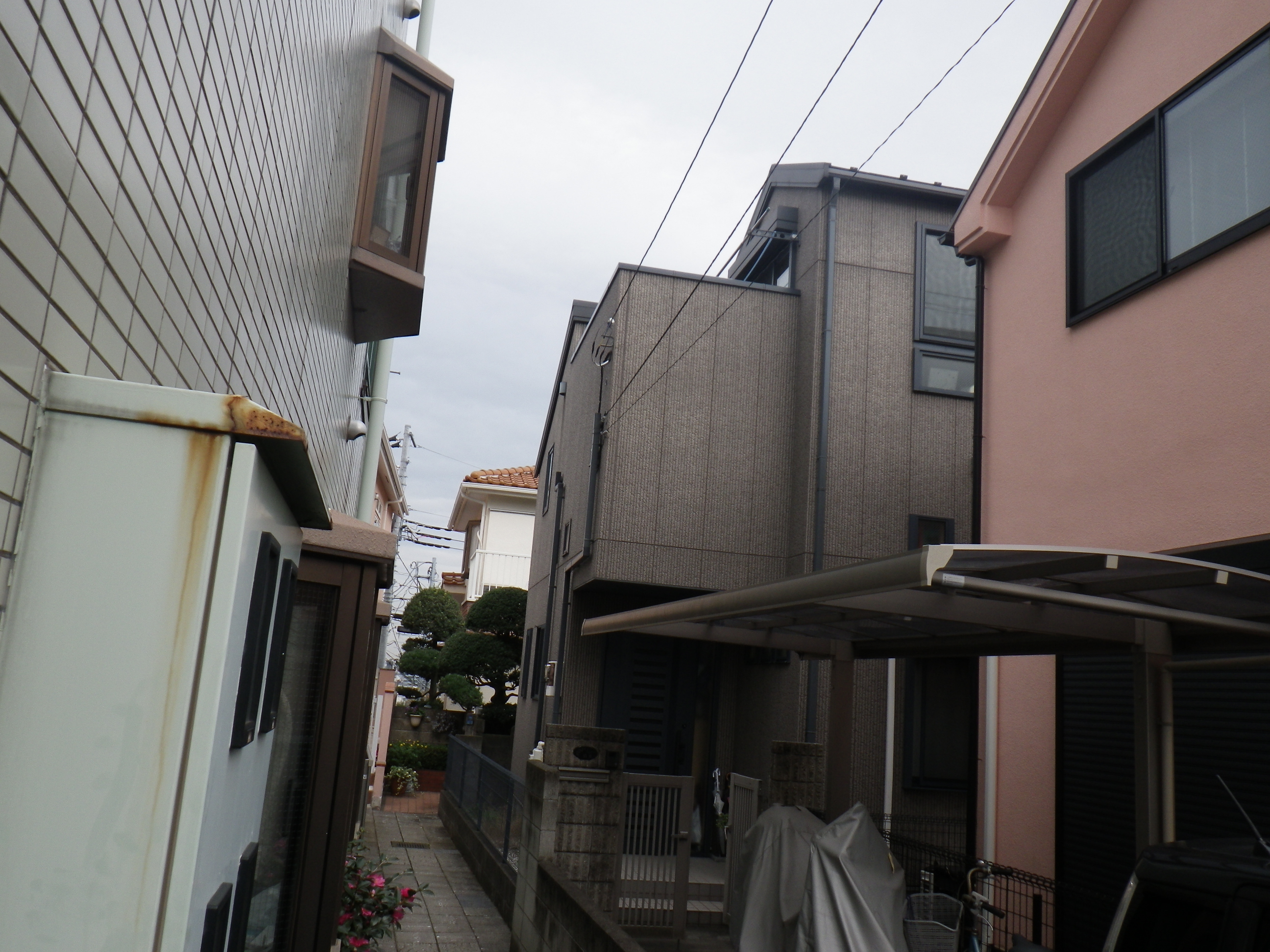 洗浄後、ケレン処理します。塗装する前に浮いている古い塗膜を落とし、細かい傷を付けて密着性を良くします。下塗りします。
