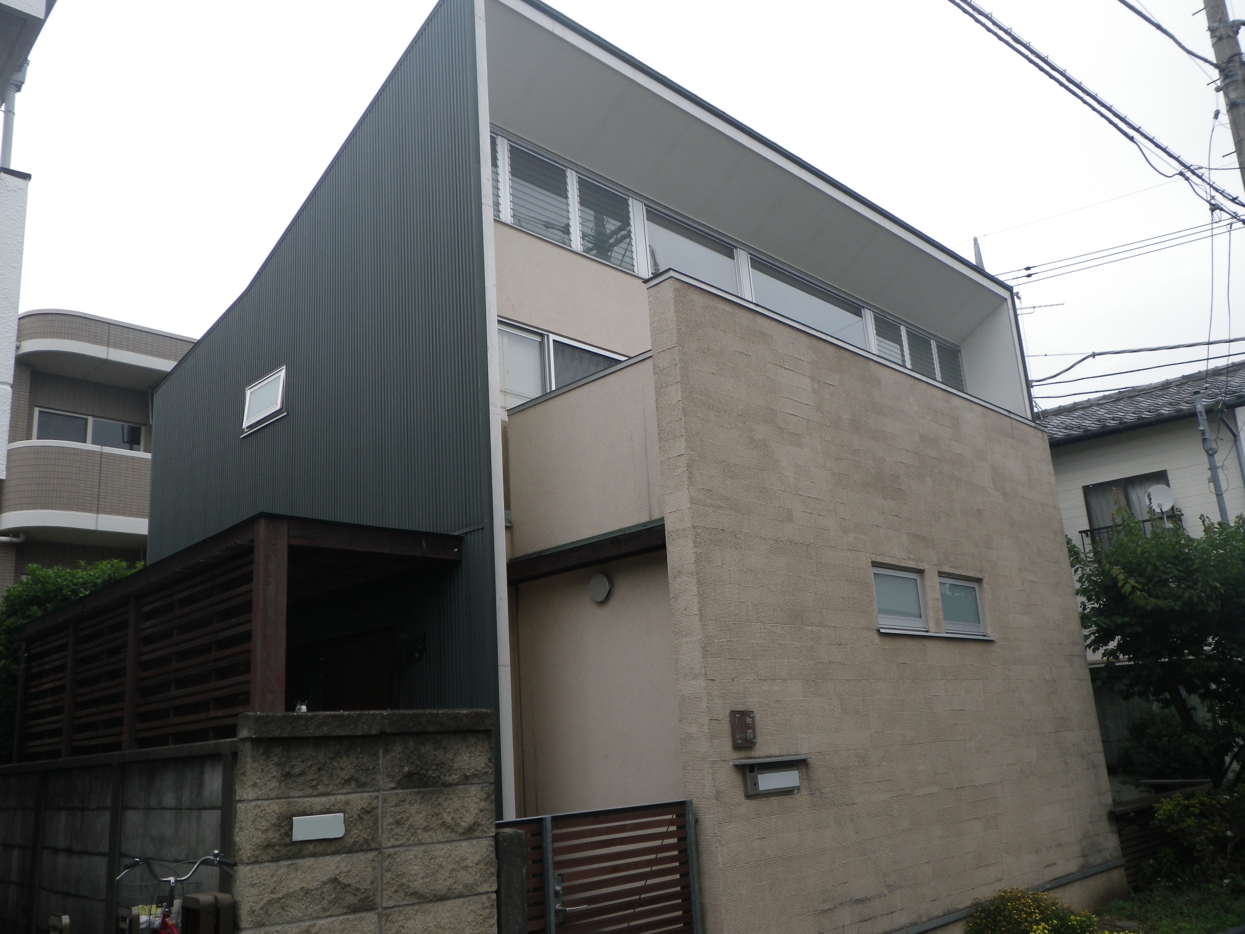 洗浄後、ケレン処理します。塗装する前に浮いている古い塗膜を落とし、細かい傷を付けて密着性を良くします。下塗りします。