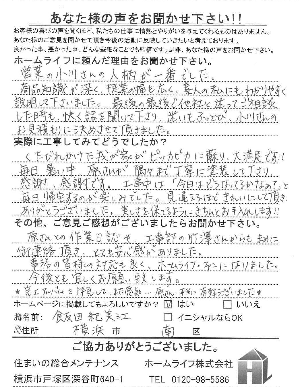 事務の皆様の対応も良く、ホームライフ・ファンになりました。