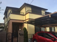 外壁バイオ洗浄後、塗料をたっぷり付けて塗装します。
