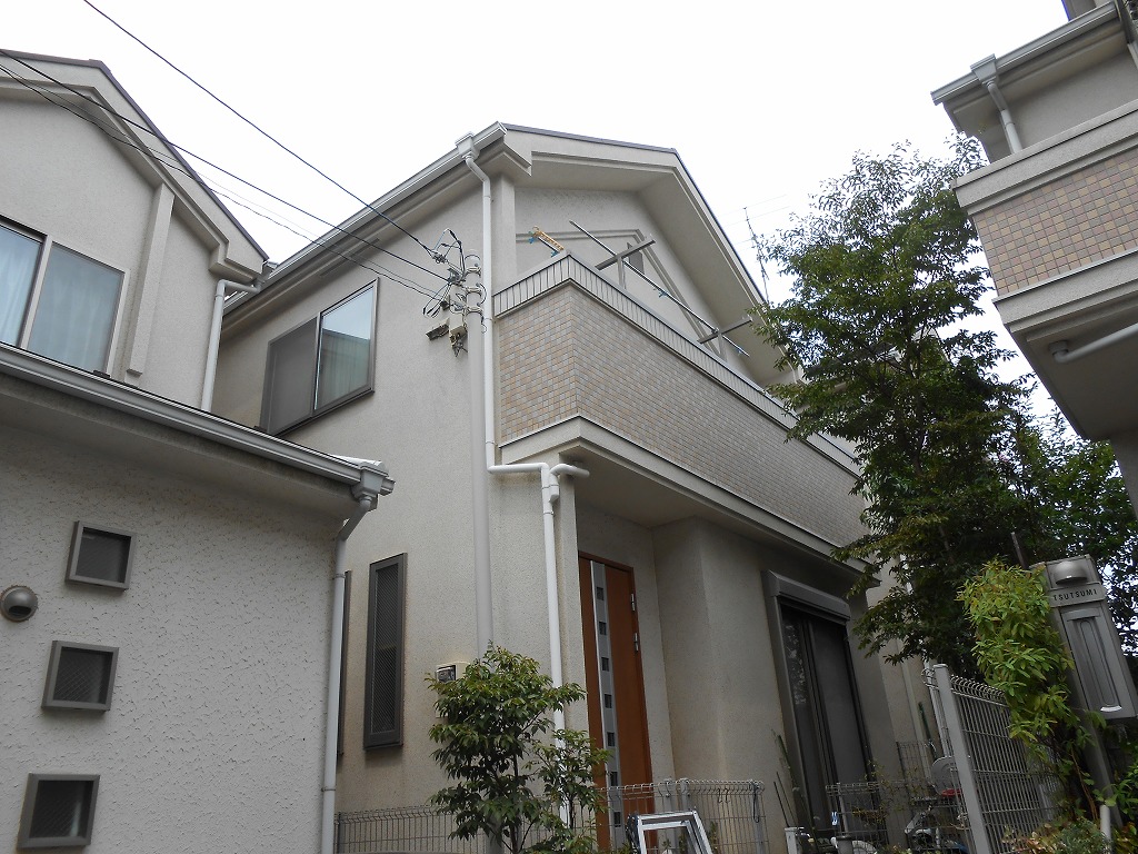 洗浄後、ケレン処理します。塗装する前に浮いている古い塗膜を落とし、細かい傷を付けて密着性を良くします。下塗り後中塗り上塗りします。塗料をたっぷり付けて塗装します。