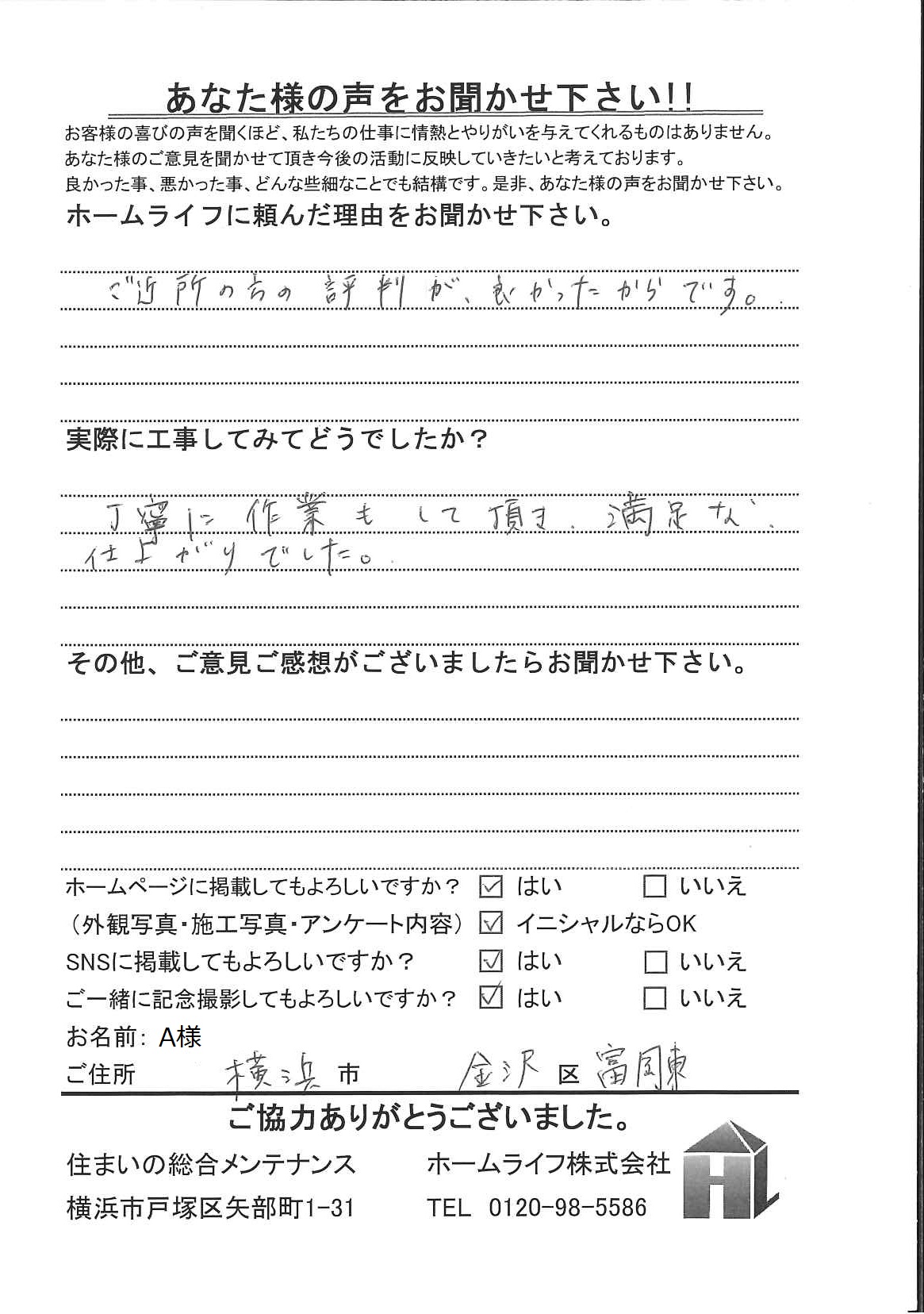 丁寧に作業もして頂き、満足な仕上がりでした。